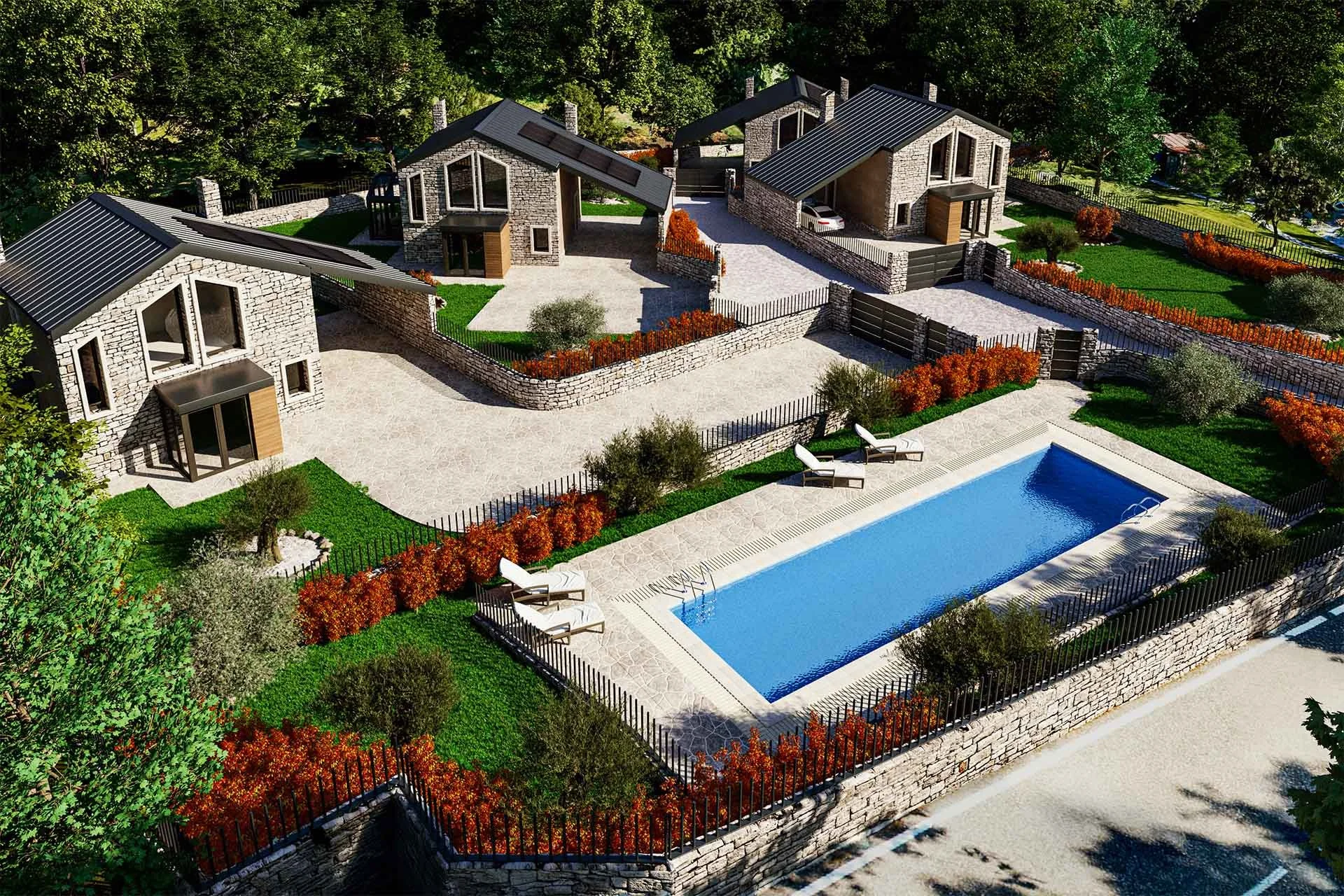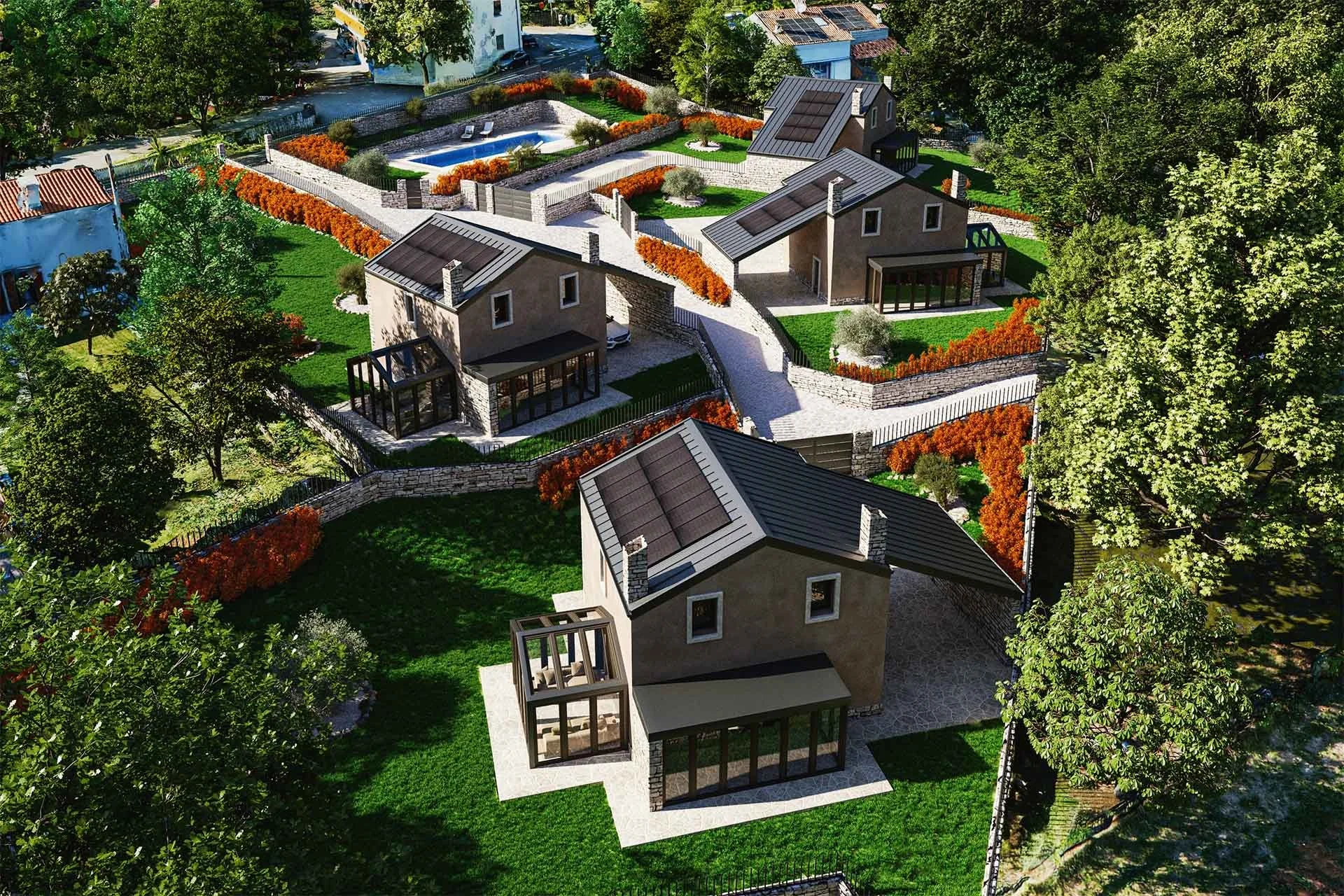 Quattro ville singole con ampi giardini a Monrupino