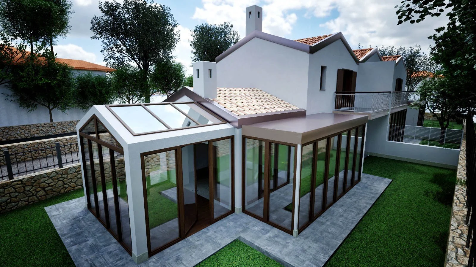 Le ville disposte su due livelli si distinguono per le ampie vetrate al piano terra che garantiscono grande luminosità naturale e per le raffinate serre solari vero valore aggiunto dell’abitazione ideali da vivere tutto l’anno e capaci di migliorare il benessere abitativo e le prestazioni energetiche.